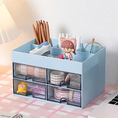 Four Drawers – Organizer da scrivania per ufficio, accessori da scrivania per bambini, organizer per biglietti da visita, penne, telefoni cellulari, cancelleria (blu)