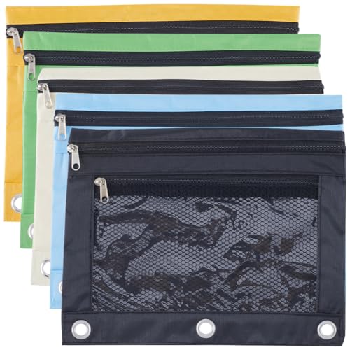 GORGECRAFT 5 raccoglitore Colorato Astuccio In Tessuto Doppia Tasca con Cerniera Finestra In Rete 3 anelli Astuccio Borse Organizer di Cancelleria per Casa Scuola Ufficio Forniture Trucco Accessori Da