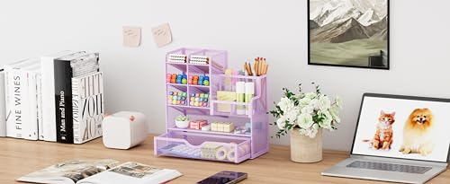 Marbrasse Organizer Scrivania in Rete, Organizer per Cancelleria, Porta penne per Scrivania, Multifunzione Organizer da Scrivania e Cassetti per Casa Ufficio (Viola)
