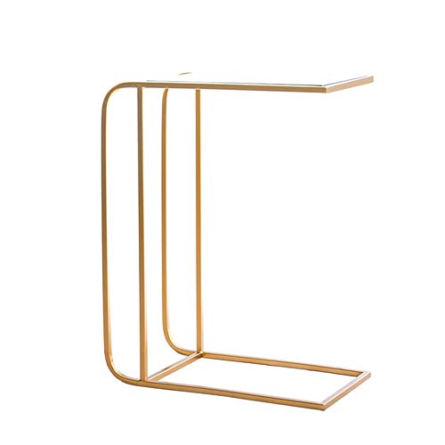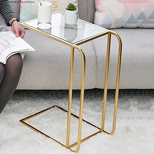 MEILISHAOMEI Tavolino da Divano,Soggiorno,Tavolo da Snack in Vetro temperato,Tavolo da Ufficio,Tavolo da Computer Portatile,Comodino da Camera da Letto,Struttura in Metallo Dorato,19,6”x11,8”x25