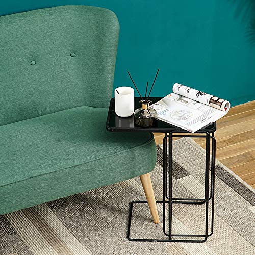 MEILISHAOMEI Tavolino Laterale in Vetro temperato per Divano,Tavolo da Snack a Forma di C,Tavolo per Laptop,tavolino Laterale,tavolino da caffè e tavolino per Ufficio Domestico,Nero,17,7”x12,5”x2