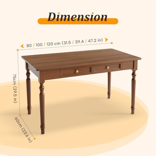 MUOLVSQ Scrivania in stile country con 2 cassetti – Scrivania per computer in legno massello per ufficio, camera da letto(Walnut,31in*29.5in*23.6in)