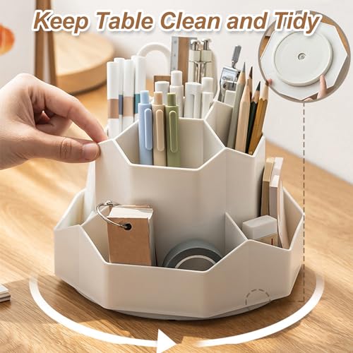 【Telaio Girevole】Il organizzatore di matite rotante ha una funzione di rotazione di 360 gradi, che consente agli utenti di riporre o estrarre facilmente gli oggetti necessari da qualsiasi direzione. La base garantisce una rotazione fluida senza oscillazioni o attaccamenti, il che migliora la stabilità d’uso.
