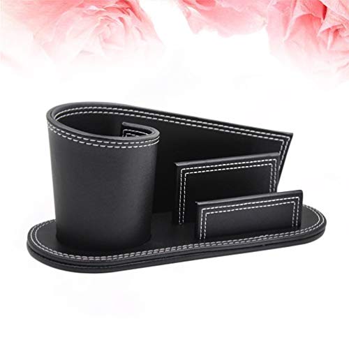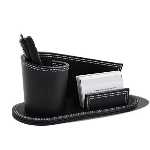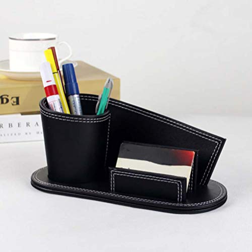 NUOBESTY Portamatite da Ufficio in Pelle Nera Accessori da Scrivania in Pelle Contenitore da Tavolo Penna Caddy Organizzatore Porta Biglietti da Visita Scatola di Cancelleria