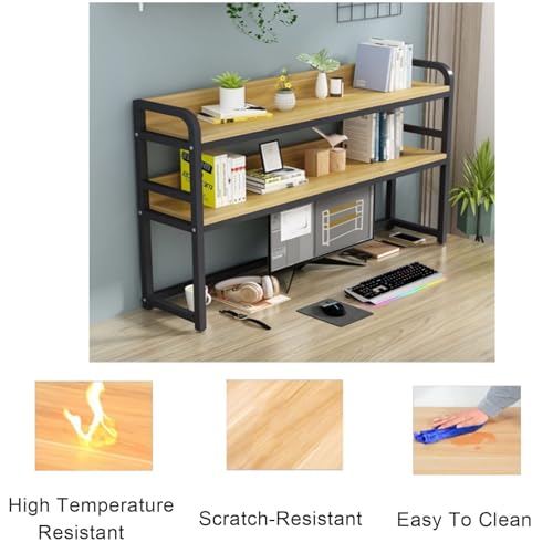Scaffale/libreria da scrivania – Scaffale da scrivania per Computer, scaffale da Esposizione, scaffale Regolabile a 2 Livelli, scaffale da Tavolo Multifunzionale in Legno, per Libri, riviste (Nero+b