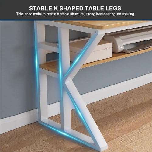 【Scrittoio robusto con gambe in metallo】 Il desktop del computer e il materiale del pannello più spessi sono legno ingegnerizzato che è impermeabile, facile da pulire e resistente ai graffi, abbastanza forte da sostenere pesi pesanti fino a 500 libbre. Le gambe in metallo a forma di K rendono il tavolo più stabile. Puoi usarlo per molti anni.