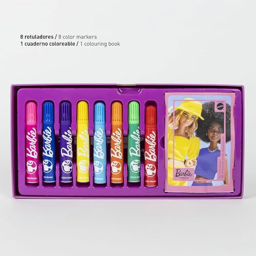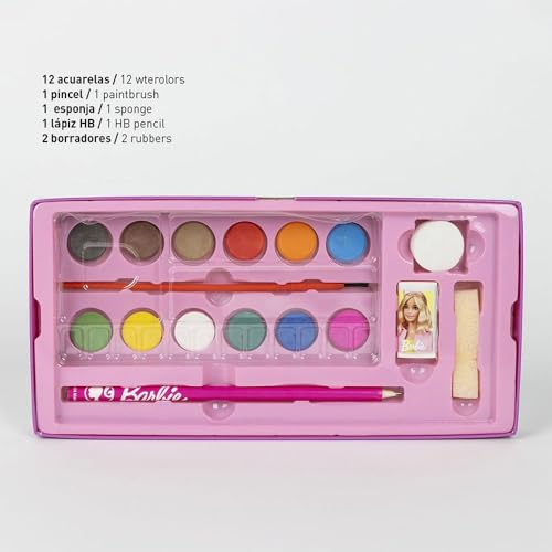 Set di cancelleria ispirato a Barbie – Colore rosa – 26 x 10 x 13 cm – Include valigetta con tutto il necessario per colorare – Prodotto originale progettato in Spagna