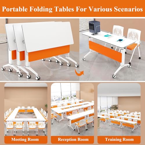 Tavolo da conferenza mobile moderno con ruote girevoli, pieghevole, per ufficio, sala riunioni, 139,7 x 61 x 76,2 cm, elegante design arancione