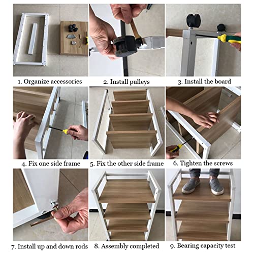 Ruote a 360°: la parte inferiore del ripiano è dotata di ruote universali, che è conveniente per lo spostamento, e le ruote sono dotate di pastiglie dei freni, che è conveniente per fissare il ripiano!