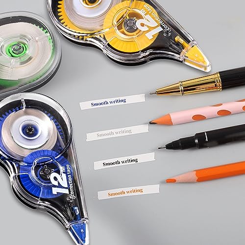Yoosso 12 Pezzi Bianchetto a Nastro, 12m x 5 mm Correttore a Nastro Scolorina Nastro Correction Tape per Bambini Studenti Ufficio Cancelleria Scuola Casa (Giallo + Blu + Verde)