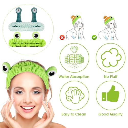 AOOTUERL 2 Pcs Fascia per capelli a forma di lumaca e rana, Fascia per lavare il viso, Spa Cura della pelle Fascia, Lavare il Viso Doccia Sport Bellezza Cura della pelle