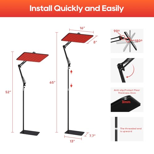 Cura del corpo multiuso: il dispositivo BEICHEN per la terapia dei raggi rossi per viso e corpo utilizza staffe in alluminio di grado aeronautico, che possono essere regolate in modo flessibile ad angoli e altezze di 180° durante l’uso. Puoi facilmente usarli per irradiare varie parti del corpo, soddisfacendo le tue esigenze quotidiane di casa a un prezzo più amichevole ed economico