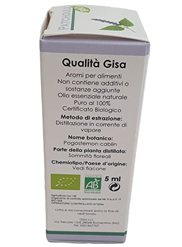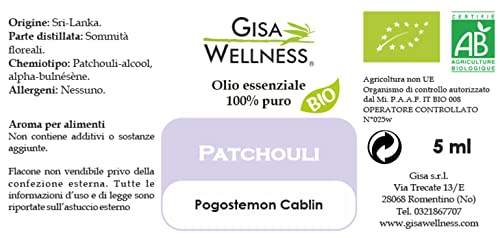Gisa Wellness – PATCHOULI – Olio Essenziale Bio – 100% Puro e Naturale – [5ml] – Alimentare – Aromaterapia – Cura della Persona – Benessere – Made in Italy