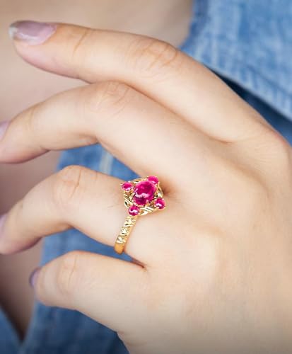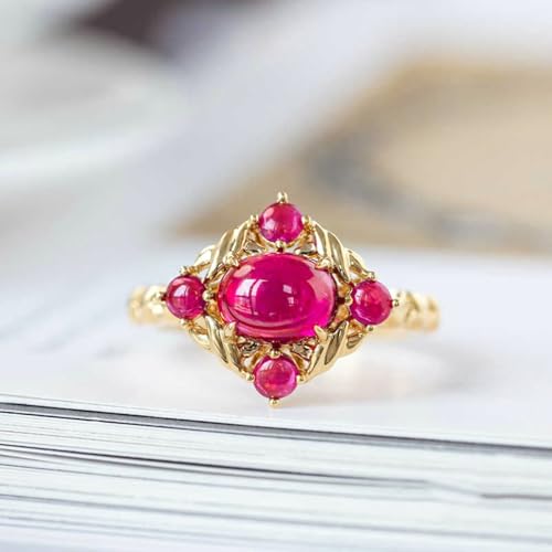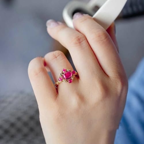 Gualiy Anelli Oro Giallo Donna, Anello di Fidanzamento 18K con 1.5ct Rubellite Tormalina Fedi Nuziali Misura 18,5