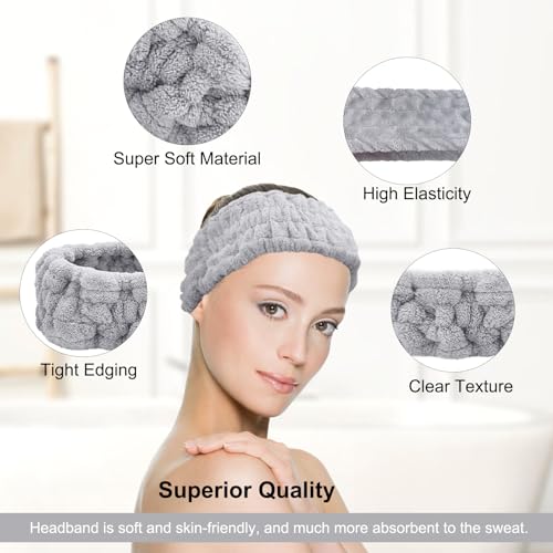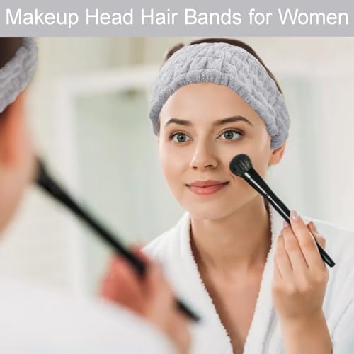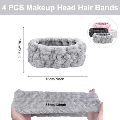 KEYRI 4 Pezzi Fascia Capelli Donna Trucco, Fascia per Viso Spa Fascia Elastico Morbido Flanella Testa Avvolge Capelli Skincare per Ragazze Viso Doccia Sport Cura Della Pelle (Nero+Bianco+Rosa+Grigio)