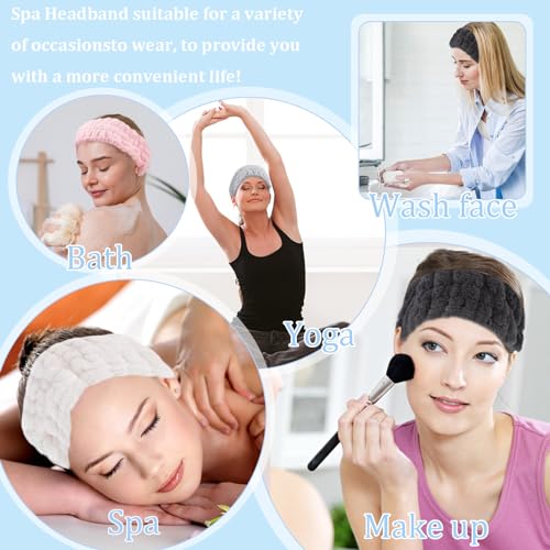 KEYRI 4 Pezzi Fascia Capelli Donna Trucco, Fascia per Viso Spa Fascia Elastico Morbido Flanella Testa Avvolge Capelli Skincare per Ragazze Viso Doccia Sport Cura Della Pelle (Nero+Bianco+Rosa+Grigio)