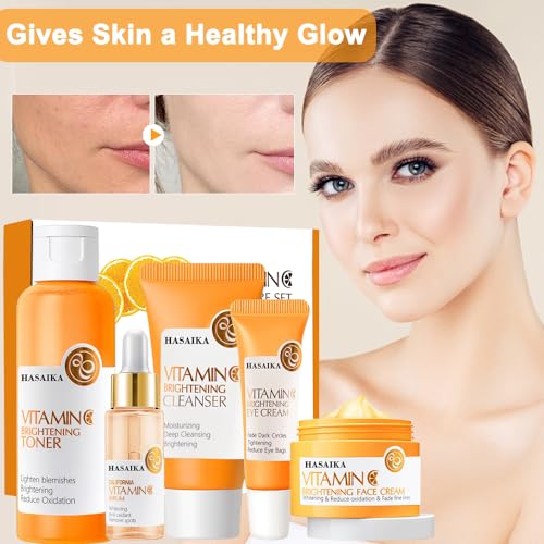 Kit per la Cura Della Pelle alla Vitamina C, Crema Rassodante Idratante per la Pelle, con Detergente, Toner, Crema Viso, Siero per Donne,per una Pelle Luminosa e Radiosa, Aiuta ad Attenuare le Rughe