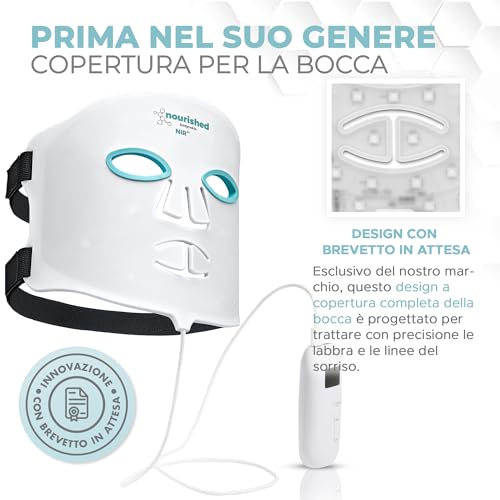 Nourished Bodynskin Maschera LED Portatile per il Viso con Infrarossi Vicini – Terapia della Luce Blu, Rossa per il Viso – 114 LED – Strumento per la Cura della Pelle contro le Rughe, Anti-Età