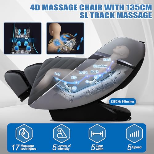 RelaxRelife Poltrona massaggiante per tutto il corpo, 4D Zero Gravity Massage Recliner, SL Track Massage con riscaldamento e compressione dell’aria, sedia massaggiante Shiatsu con altoparlante