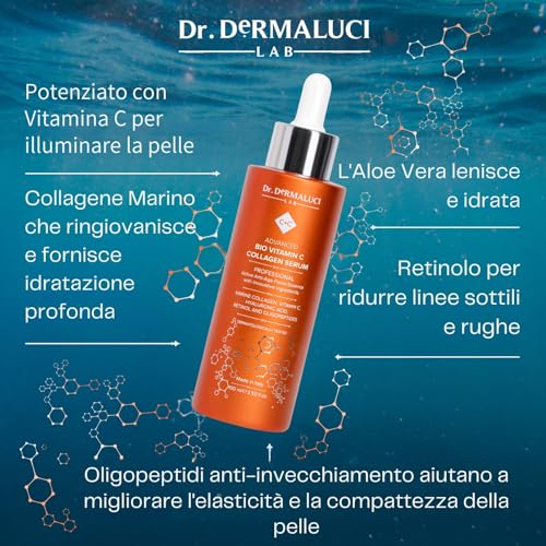 Il viso retinolo è un derivato del retinolo, che è un vitamina A che aiuta a ridurre le rughe, le macchie di pigmentazione e le imperfezioni della pelle. Il Siero Vitamina C Acido Ialuronico Viso Retinolo Collagene Bio contiene una quantità elevata di viso retinolo, che si unisce al collagene per promuovere la sua produzione e la sua integrità.
