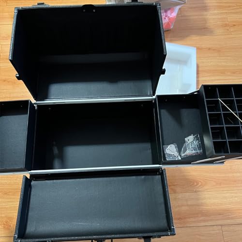 Scatola per il trucco di grande capacità: ci sono 4 scatole sullo strato superiore. La tasca a rete è progettata per contenere i pennelli. Lo strato intermedio può contenere ferri arricciacapelli e accessori per capelli. I 40 scomparti nella scatola possono essere rimossi. Quando il coperchio laterale è aperto, può essere utilizzato come banco da lavoro.