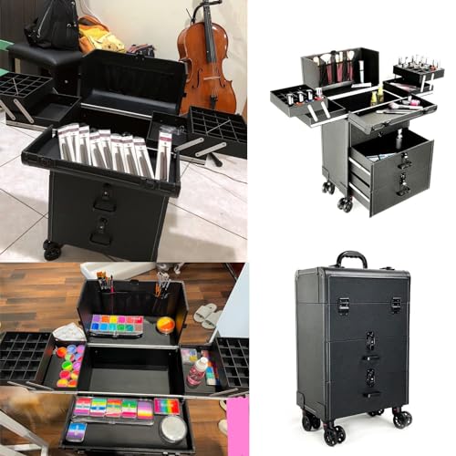 Valigia Porta Trucchi Beauty Trolley Case, Trolley per Il Trucco con Ruote, Trolley Professionale per Cosmetici di Grandi Dimensioni, Valigia da Viaggio per Il Trucco, Baule per Tatuaggi da Barbiere