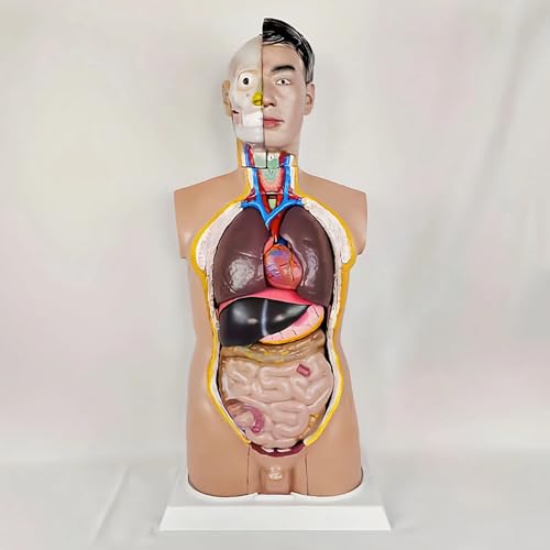 CARATTERISTICHE: Modello anatomico del torso di metà corpo maschile: 85 cm/35 pollici di materiale, che mostra la struttura dettagliata di ciascun organo e sistema principale (respirazione, digestione, urinario).