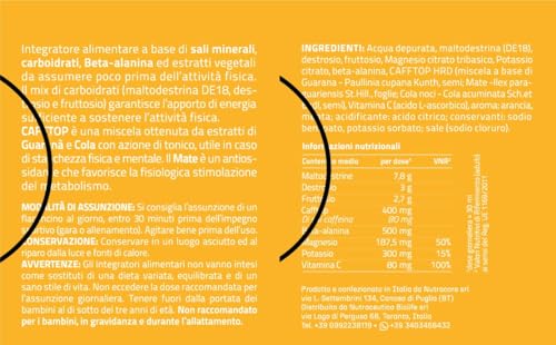[IDEALE PER] La miscela CAFFTOP, a base di Guaranà, Cola e Mate, aiuta a migliorare la vigilanza, combattere l’affaticamento e stimolare il metabolismo.