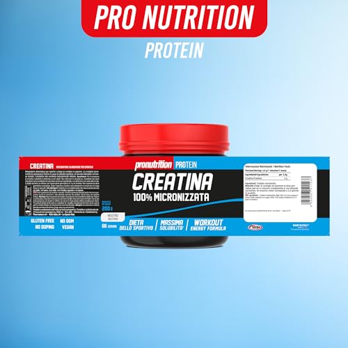 PRO NUTRITION – Creatina micronizzata 200g, Integratore Alimentare, Attività Fisica Elevata Intesità – Incremento Prestazioni Fisiche, Mantenimento di Energia, Creatina, Vitamina B6