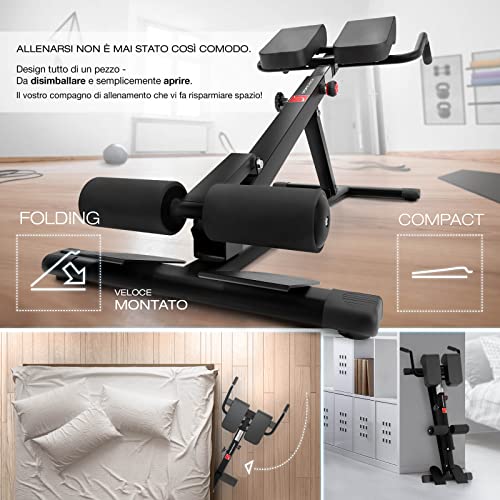 Sportstech in salute e in forma nel 2020. Panca per addominali & lombari/schiena, barra per Dip per casa. Ergonomica, regolabile. Sistema (BRT150 Nero)
