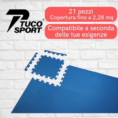 Tuco Sport Tappeto Da Fitness A Puzzle【Set Da 21 Tappetini】Materassino Antiscivolo Da Palestra Componibile Con Protezione Antiurto Per Pavimenti, Pesi, Dischi, workout, Ginnastica, Piscina