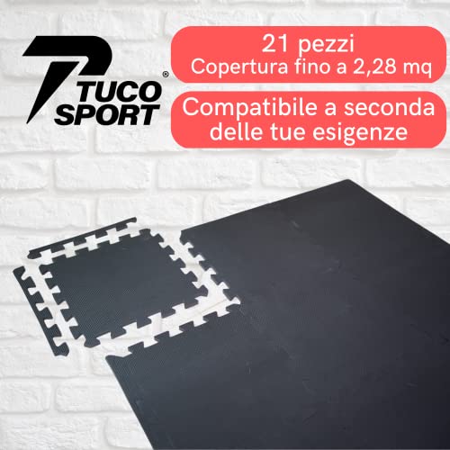 Tuco Sport Tappeto Da Fitness A Puzzle【Set Da 21 Tappetini】Materassino Antiscivolo Da Palestra Componibile Con Protezione Antiurto Per Pavimenti, Pesi, Dischi, workout, Ginnastica, Piscina