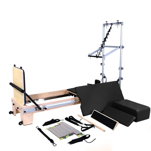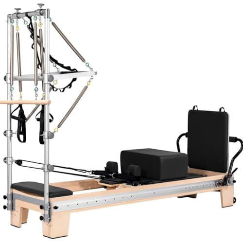 Wunder Pilates Pro Classic Reformer – Macchina fitness con torre, in legno d’acero, C1, colore: Nero