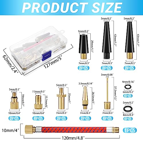 Adattatore Valvola Presta Bici, 33 Pezzi Set Kit Gonfiaggio Bici SV DV AV con Scatola di Immagazzinaggio, Adattatore Pompa Bicicletta con Tubo di Gonfiaggio, per Pneumatici Palloncini e Cuscini d’Aria