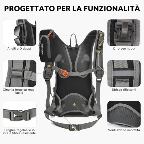 Arvano Zaino Mtb Enduro con Sacca Idrica 2l,Zaino Bici Mountain Bike,Zainetto Acqua Sci 18l Impermeabile Leggero,Zaino Idratazione con Vescica per Corsa bicicletta Ciclismo Maratona Trekking Trail