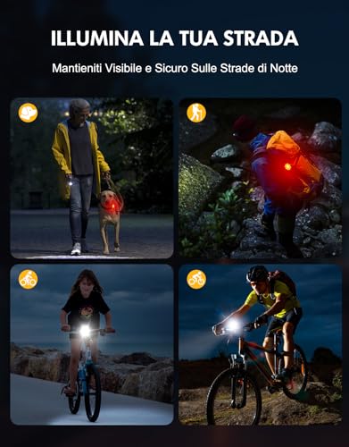 【Applicazioni Versatili – Compagno Affidabile】 Questo luce anteriore bici offre sorgenti LED gialli e bianchi che possono essere utilizzate separatamente o insieme. Migliora la visibilità durante le pedalate notturne o i tragitti diurni, e può servire come torcia d’emergenza. Leggero e compatto (solo 32g), è ideale per il trasporto e la sicurezza contro i furti quando parcheggiato. Sia che tu stia in sella alla bici, porti il tuo cane a passeggio o ti trovi in una situazione di blackout.