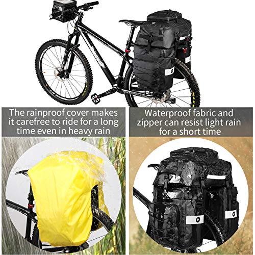 Borsa per Bicicletta 3 in 1 Borse Posteriori Bici Grande Portapacchi per Biciclette Impermeabile con Copertura Antipioggia (nero)