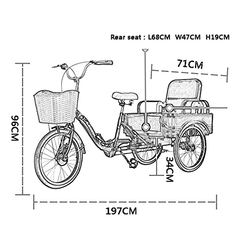Bici a Tre Ruote Triciclo Adulti, Bici Crociera 20 Pollici con Cestino della Spesa e Sedile Posteriore, Bicicletta a velocità Singola i Genitori Che Vanno a Prendere e Lasciare i Bambini in biciclet