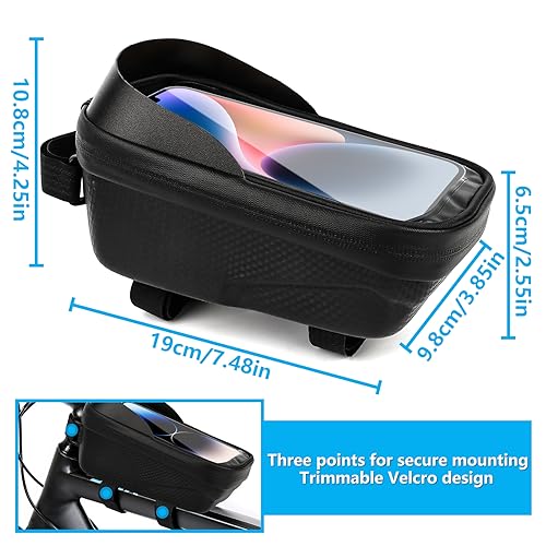 Utilizzo senza problemi del telefono cellulare: La borsa da bici è adatta per smartphone con display massimo di 6,7 pollici e dimensioni massime di 16,8 x 9 cm. Il potente riconoscimento delle impronte digitali rende il vostro cellulare un perfetto dispositivo di navigazione!