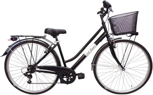 Cicli Tessari – bicicletta da donna bici da passeggio city bike ruota 28 trekking cambio 6 velocita’ con cesto anteriore (nero)