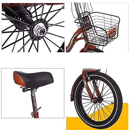 DINNA Triciclo Adulti 1 velocità 16 Pollici 3 Ruote Bici Cesto Sedile Posteriore Bici Crociera Tre Ruote Luce Campana Donna Uomo Shopping Cyclette, Triciclo