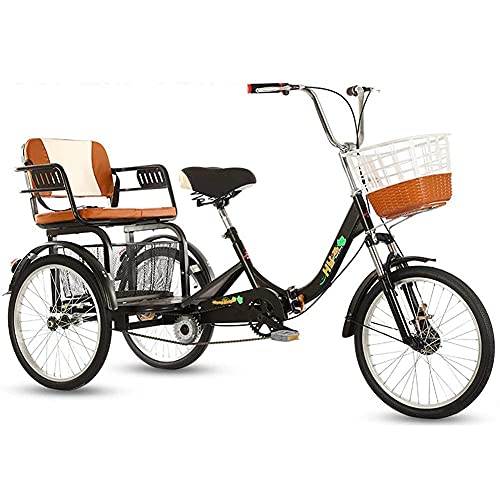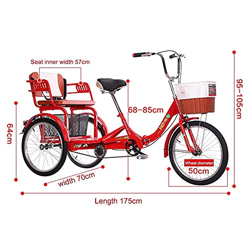 DINNA Triciclo Adulti 20 Pollici cestello Sedile Posteriore Trike Bike Principianti Biciclette 3 Ruote velocità Singola 3 Ruote Regolabili in Altezza, Triciclo