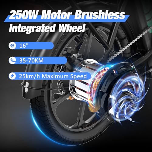 ELEKGO Bicicletta Elettrica Bicicletta Pieghevole da 16 Pollici Batteria da 36V 8.4Ah per Pendolari, City Bike con Motore da 250W, Bici Elettrica per Adulti Fino a 35-70 KM