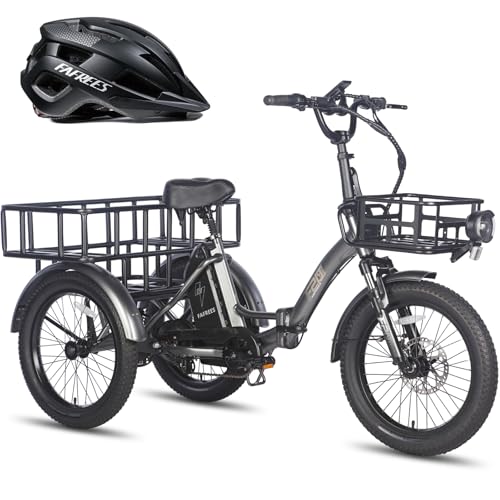 Fafrees Triciclo Elettrica F20 Mate Bici Elettrica Pieghevole per Adulti Batteria Rimovibile 48V18.2Ah Ebike, Bicicletta Elettrica a 3 Ruote 20″×3.0, con Caschi, Grigio, Cestino Ante- e Post- (Grande)