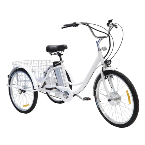 HTDRE Triciclo Elettrico per Adulti, Bicicletta elettrica da 24 Pollici con Ampio Cestino e Luce, Adatta a Uomini, Donne e Anziani, per Picnic, Shopping e Lavoro, Bianca