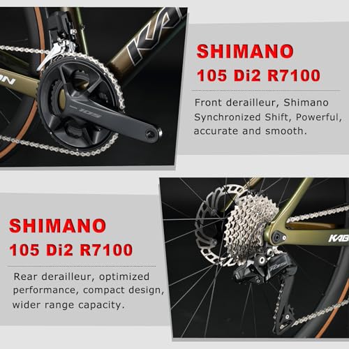 KABON Bici da Strada in Carbonio, Bici da Strada con Telaio in Fibra di Carbonio 700C 24S Bicicletta da Strada con Cambio 105 Di2 7170 Gruppo Bici da Corsa con Freno a Disco per Adulti