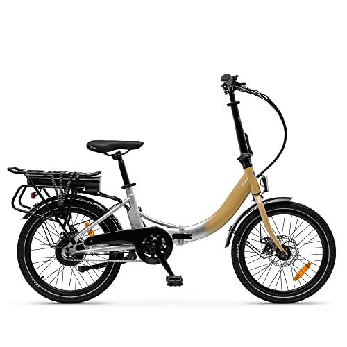 Lancia Ypsilon Brio, Bici Pieghevole Elettrica, Ruote 20″, Autonomia Fino a 60 km, Motore 250W, Freni a Disco, Scatto Fisso, Rack posteriore,
