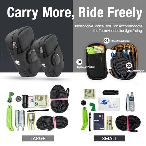 CARATTERISTICHE: Mantieniti organizzato in movimento con la nostra resistente borsa da sella per bici, progettata specificamente per bici da strada e mountain bike