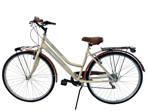Questa bicicletta da passeggio, prodotta da MADICKS, è una elegante e retro-stile bici da città ideale per le donne. La misura 28 è adatta per una gamma di altezze, rendendola accessibile a molte persone. Il cestino in vimini beige aggiunge un tocco di classica eleganza, mentre il cambio in italiano rende la guida più semplice e intuitiva. La bicicletta è stata progettata per essere una bici da città, ma è anche adatta per una passeggiata serena e rilassata. Il design retro-stile e la qualità costruttiva rendono questa bici da passeggio una scelta eccellente per chi cerca un’alternativa alla tradizionale bici da città.