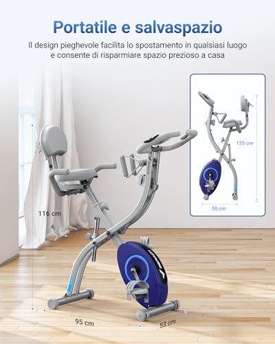 CARATTERISTICHE: [Bicicletta da Allenamento 4 in 1]: il design 4 in 1 offre modalità bici verticale e reclinata, esercizi per braccia e schiena. Con diverse modalità di fitness tra cui scegliere, puoi goderti un allenamento personalizzato mirato a tutti i principali gruppi muscolari del tuo corpo.